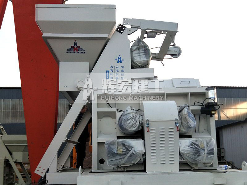 JS2000攪拌機的上料系統由卷揚機構、上料架、料斗、進料嘴等部分組成。